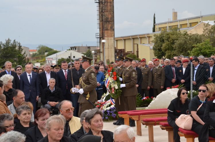 U popodnevnim satima uslijedilo je polaganje vijenaca. U ime predsjednice Republike i vrhovne zapovjednice Oružanih snaga Republike Hrvatske Kolinde Grabar-Kitarović vijenac su položili izaslanici Ante Deur i komodor Ivica Tolić. U ime Hrvatskog sabora izaslanik predsjednika Damir Krstičević, u pratnji saborskih zastupnika Mira Bulja i Miodraga Deme. Izaslanik ministra Ivan Vukić položio je vijenac Ministarstva branitelja, a izaslanik ministra obrane, načelnik Glavnog stožera OSRH general pukovnik Mirko Šundov u pratnji glavnog inspektora obrane general bojnika Slavena Zdilara i izaslanika zapovjednika HKoV-a pukovnika Mile Vukičevića. Vijence su položili i župan Splitsko-dalmatinske županije Zlatko Ževrnja izaslanstvo Zbora veterana hrvatskih gardijskih postrojba i specijalne policije u kojem su bili Mladen Markač, Josip Klem i Dražimir Jurkić, kao i brojne druge udruge proizišle iz Domovinskog rata.