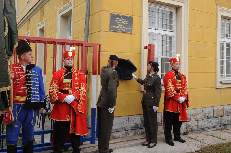 Sveta misa održana je u Katedrali Navještenja Blažene Djevice Marije, a potom svi sudionici u mimohodu kreću ulicama grada Gospića do vojarne „Eugen Kvaternik“, gdje je otkrivena ploča s novim nazivom vojarne. Dosadašnji naziv vojarne „Eugen Kvaternik“, promijenjen je u „Vojarna 9. gardijske brigade VUKOVI“.